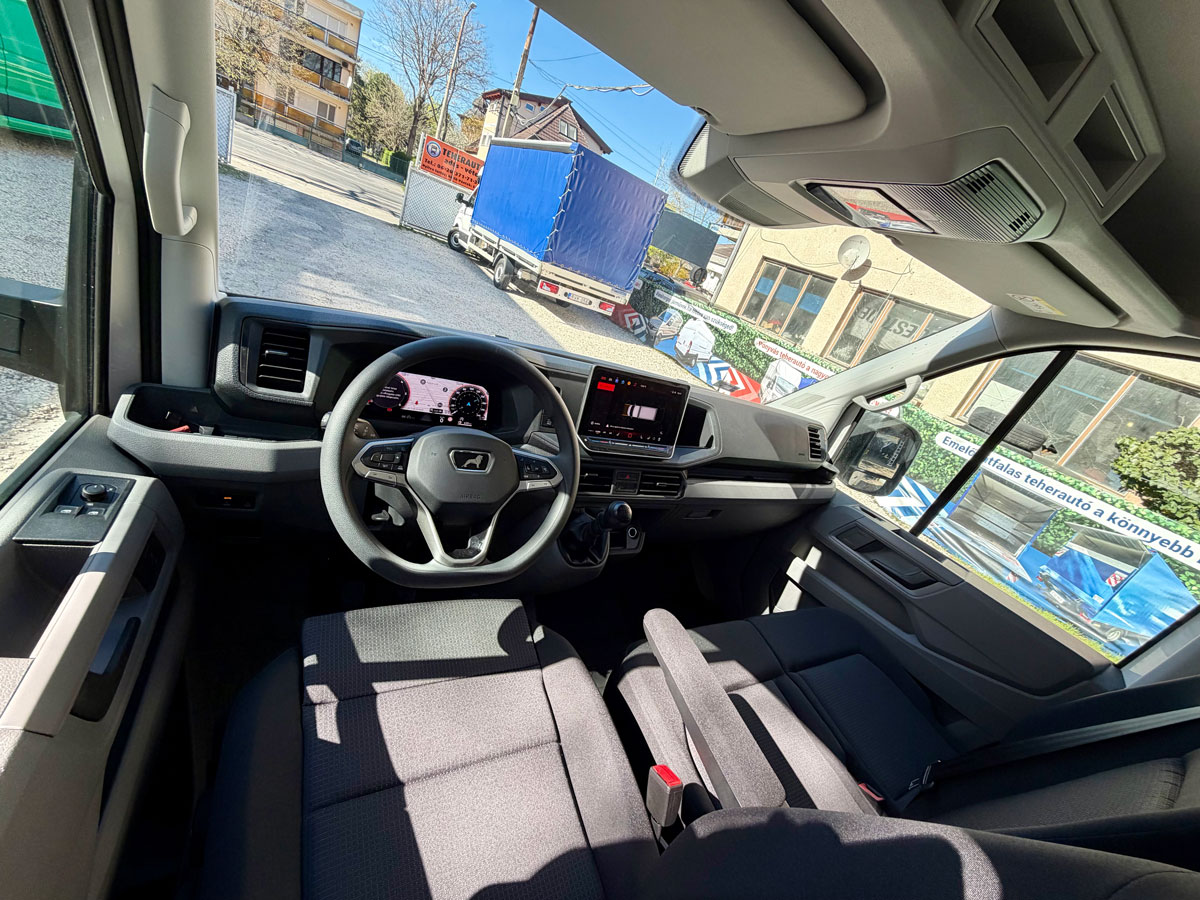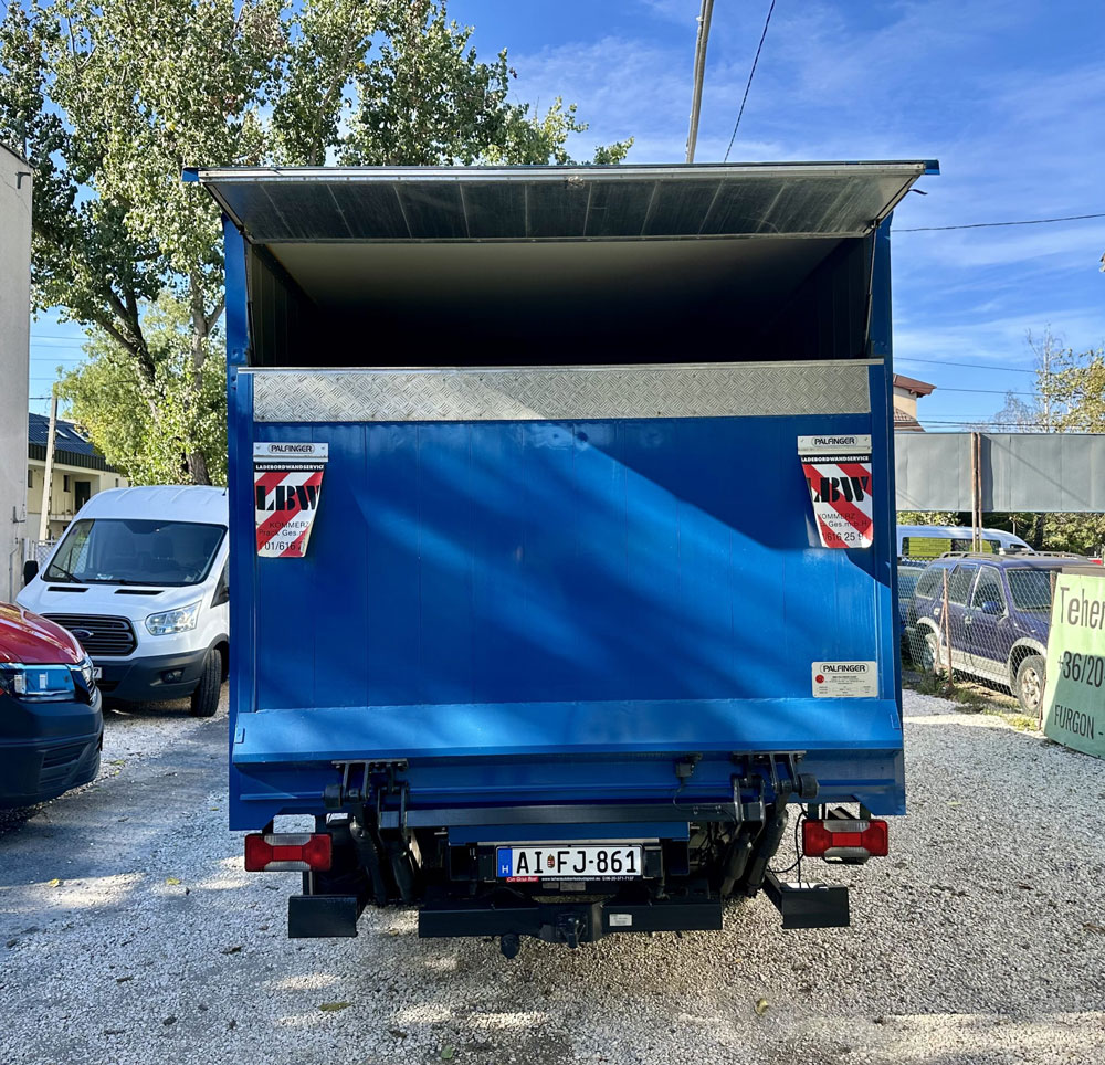 Alvázas-dobozos emelőhátfalas teherautó. Nincs kerékjárati szűkület. Kivételesen magas rakodódoboz. (8 EU raklap) Élvezhető minőségű utastér, dupla soros rögzítősínek.